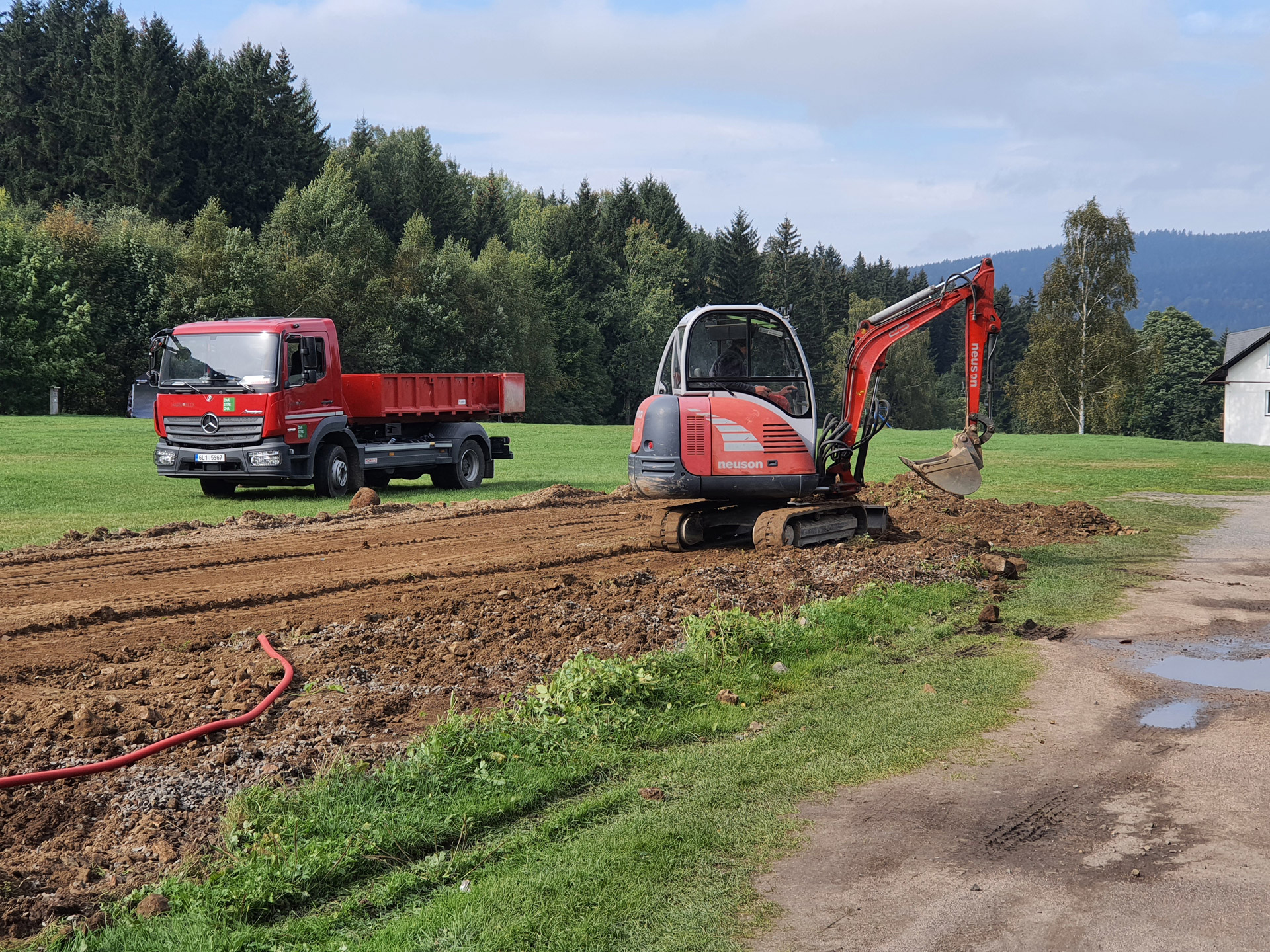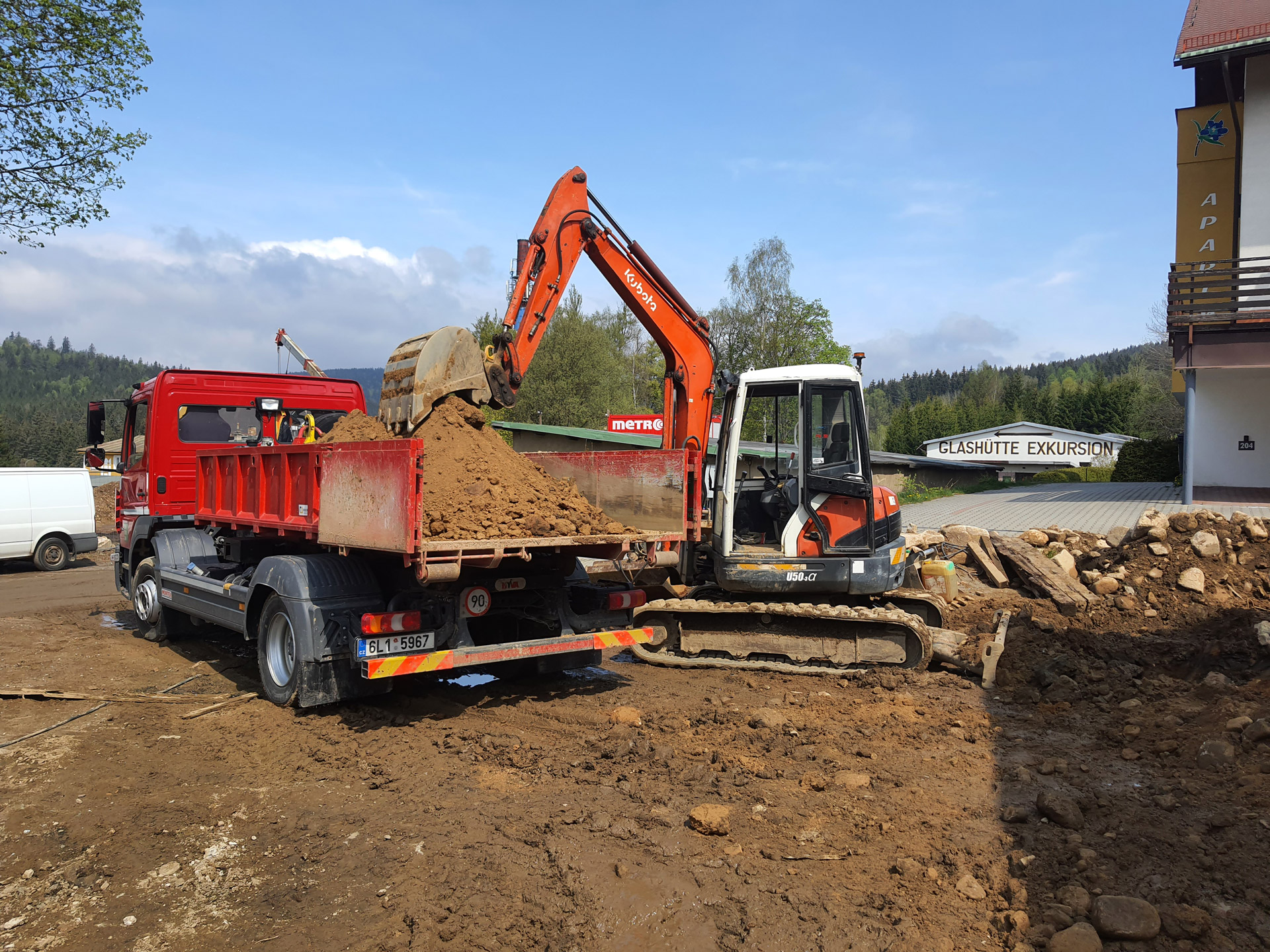 Jsme držiteli strojních průkazů. Techniku k vám na staveniště dopravíme vlastním nákladním automobilem.